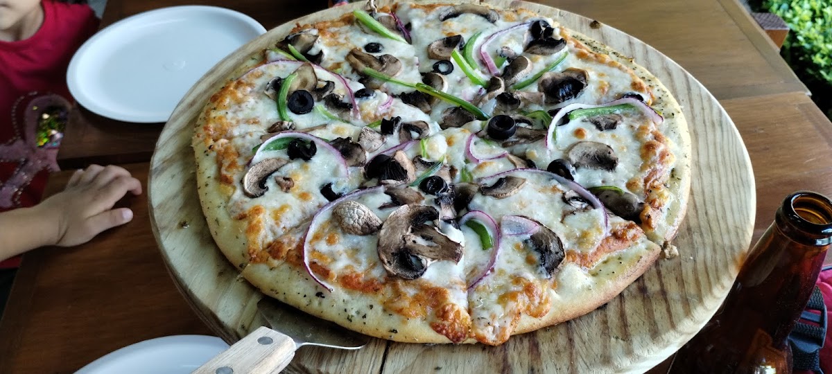 Muy ricas las pizzas, se nos hicieron muy ligeras y sabrosas, la verdad es que todos y cada uno de los ingredientes son de calidad. Las bebidas muy frías, y variedad de cerveza. El lugar muy cómodo, extenso y con ventiladores. Cuenta con juegos infantiles.