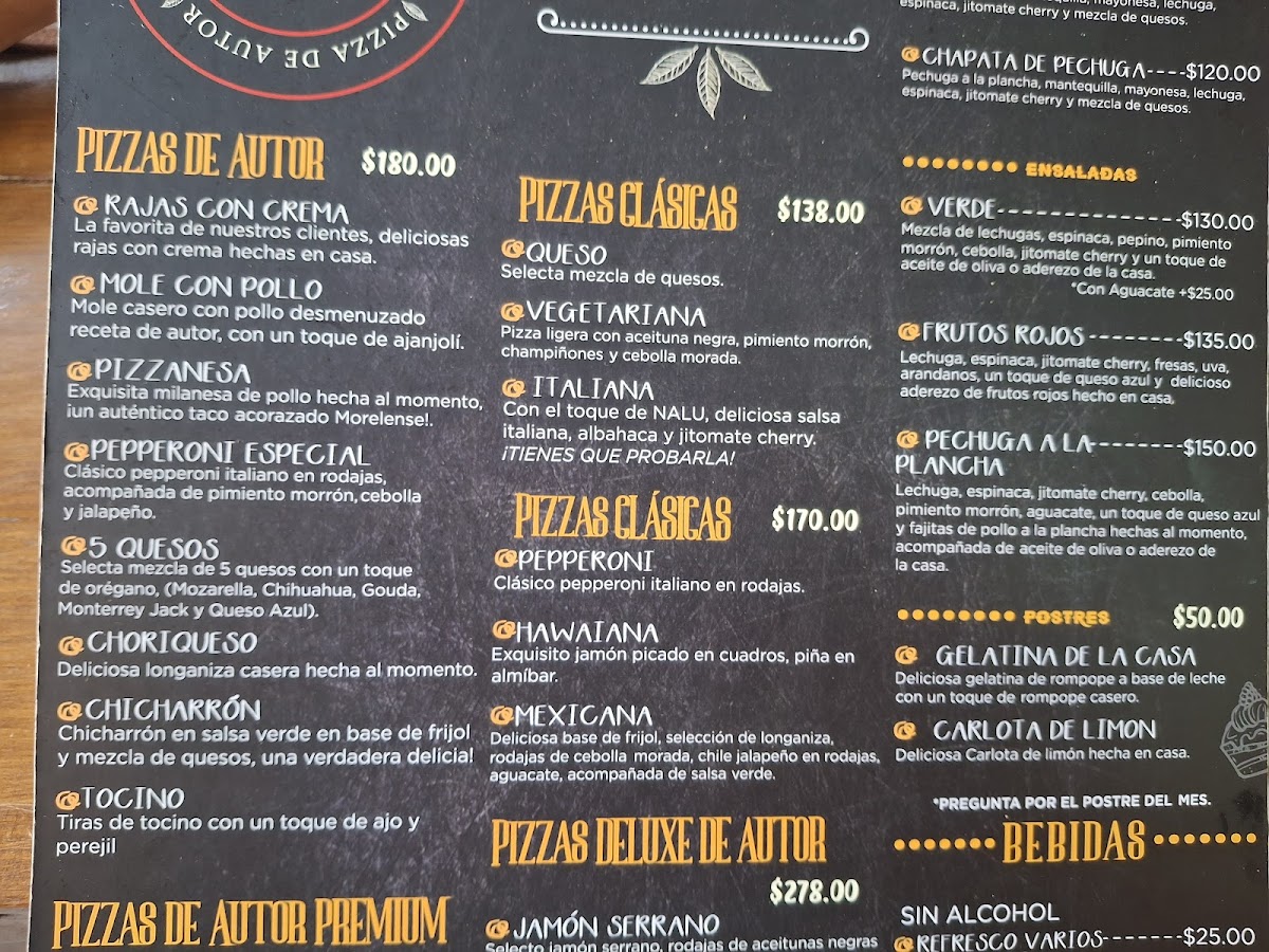 NALU PIZZAS DE AUTOR Menu